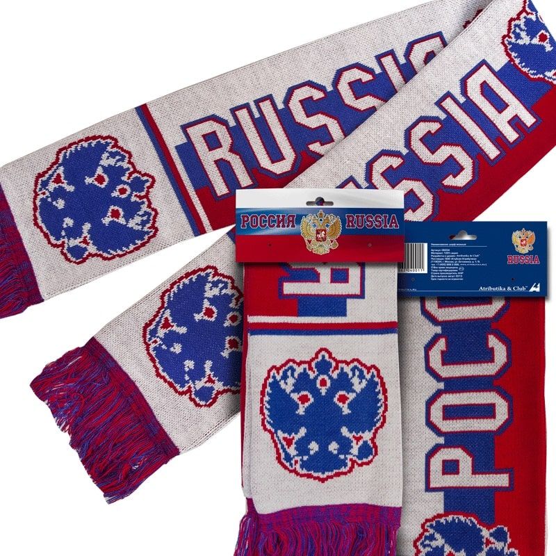 Шарф РОССИЯ трикотажный бело-синий 06203