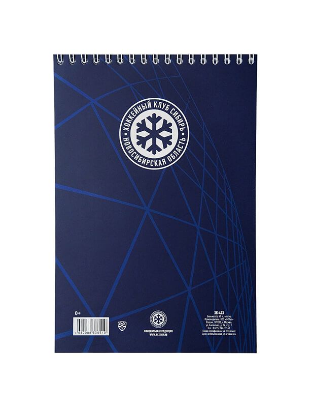 Блокнот с листами размера А5 в клетку с изображением маскота ХК Сибирь.
