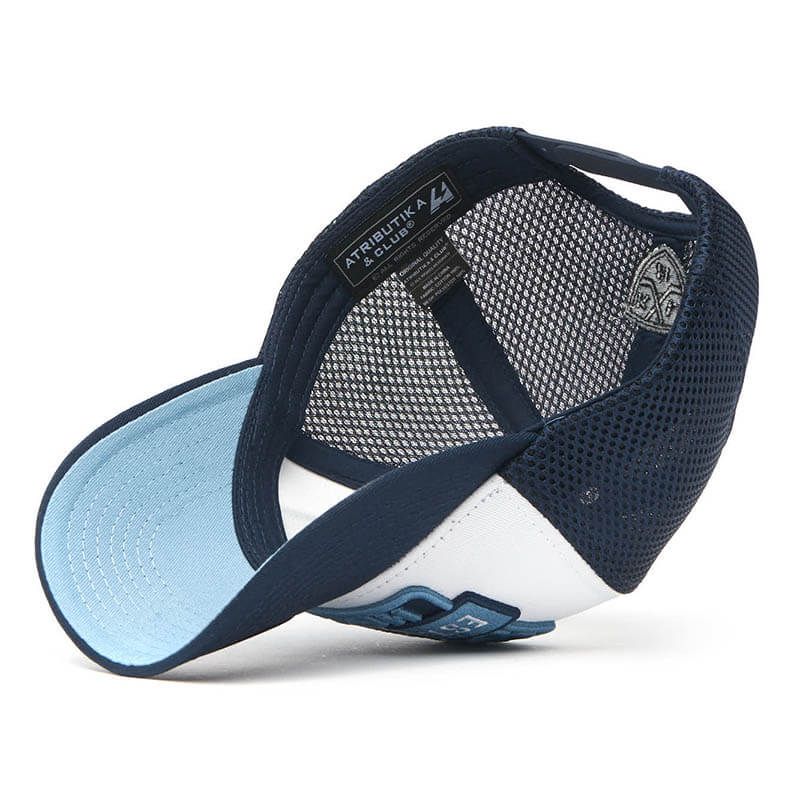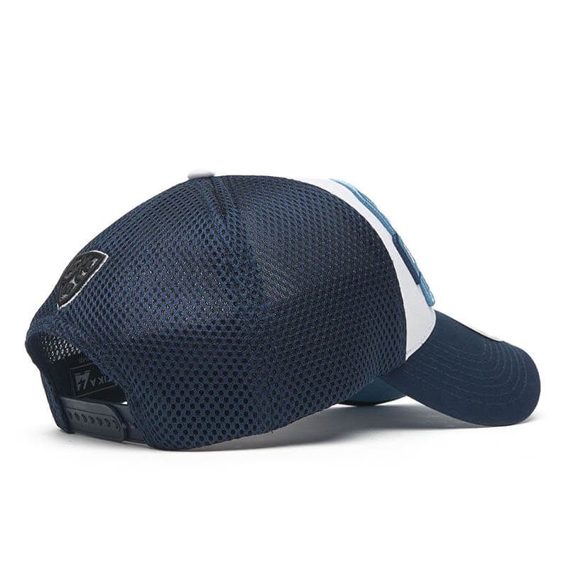 Летняя бейсболка с сеткой и пластиковым фиксатором.