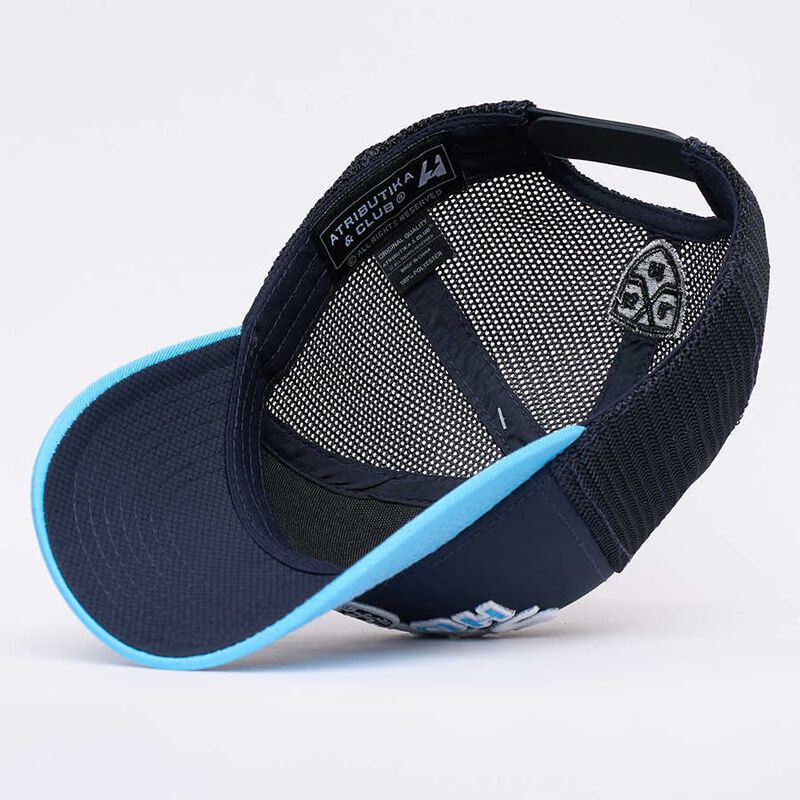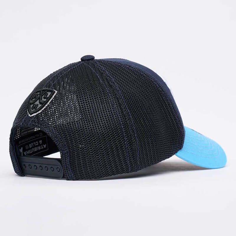 Фронтальная часть и козырёк бейсболки выполнены из ткани рипстоп, которая имеет оригинальную чуть заметную фактуру (клетчатую). Задняя часть — сетка. Размер регулируется при помощи пластиковой застежки.