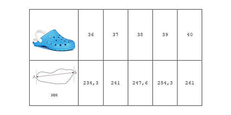 Обувь подойдет для повседневной жизни, для пляжного отдыха и работы в саду, а также для сотрудников медицинских организаций, пищевых производств, клининговых компаний и др.