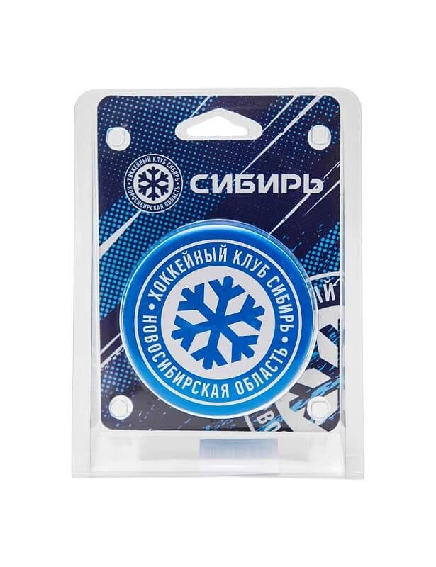 Шайба односторонняя с логотипом ХК Сибирь в пластиковой упаковке.