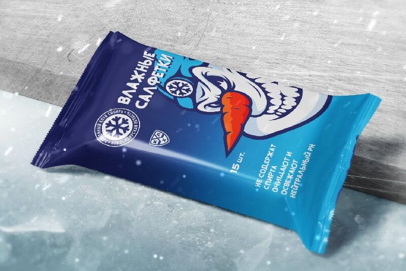 Салфетки влажные «АКВАМАРИН», серия «Хоккейный Клуб СИБИРЬ» с антибактериальным эффектом.